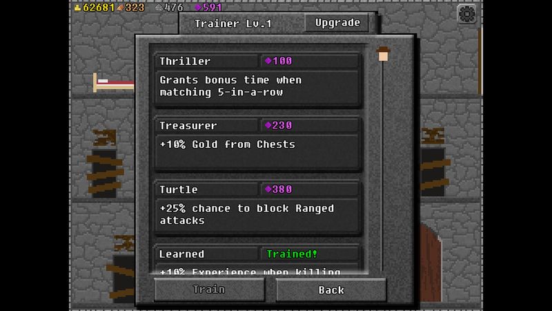 – Đó cũng là một game nhập vai! – Mỗi cuộc chiến trong ngục tối và quái vật mang lại cho bạn kinh nghiệm để sử dụng cho các kỹ năng mới tại huấn luyện viên