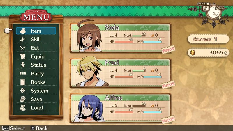 Trong trò chơi này, nhân vật không tăng cấp bằng cách chiến đấu với quái vật. EXP có được bằng cách ăn! Nhiều tác dụng khác nhau, chẳng hạn như tăng khả năng kháng bệnh và tăng chỉ số theo thời gian, cũng có thể được tìm thấy trong các món ăn. Vật liệu có được bằng cách thu thập trong ngục tối, từ quái vật trong trận chiến và thông qua các phương pháp khác.