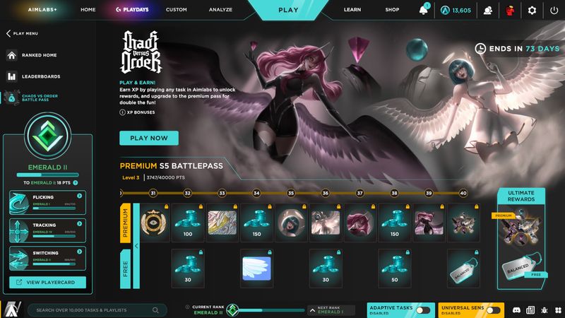 • Battlepass: Kiếm phần thưởng độc quyền bằng cách chơi Aimlabs mỗi mùa!