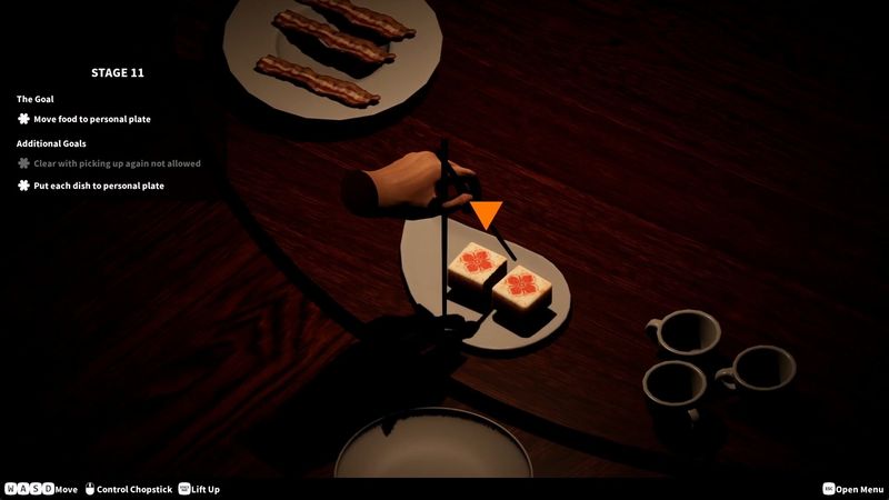 Nhặt và di chuyển thức ăn từ đĩa này sang đĩa khác bằng đũa để giải câu đố.