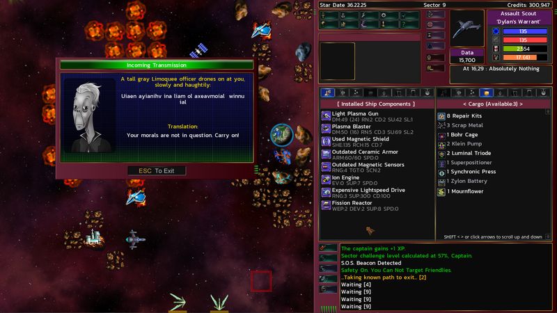 Trò chơi không gian thập niên 90 mà bạn luôn mong muốn! Bạn là thuyền trưởng phi thuyền, đang tìm kiếm đế chế đã sụp đổ của loài người. Xây dựng đội ngũ sĩ quan ưu tú. Trang bị cho họ những thiết bị tốt nhất mà bạn có thể tìm, mua hoặc chế tạo. Khám phá một thiên hà thủ tục vô tận. Có được sự giàu có, quyền lực và ảnh hưởng. Chết liên tục, phong cách roguelike!
