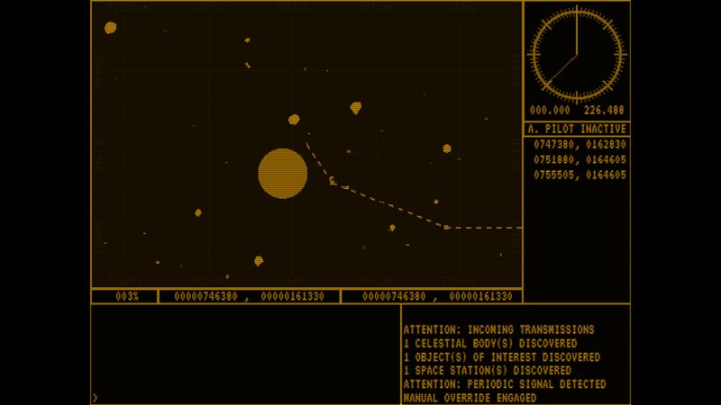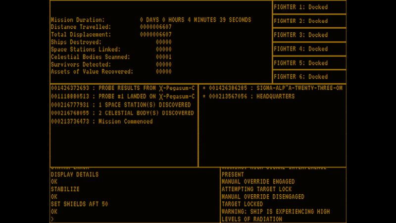 Sử dụng các lệnh văn bản và giao diện theo chủ đề những năm 1980 cùng với hướng dẫn vận hành, người chơi phải điều khiển con tàu không gian của mình để điều hướng các thiên thể và tiểu hành tinh khác nhau trong khi tránh tàu vũ trụ thù địch để tìm bất kỳ bằng chứng nào về những người sống sót.