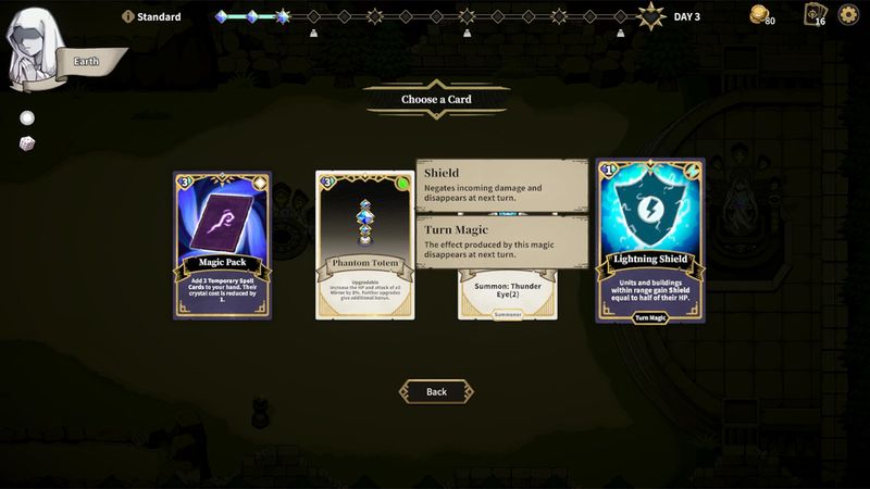Sử dụng thẻ bài để đặt hoặc nâng cấp công trình và niệm phép. Xây dựng bộ bài tùy chỉnh của riêng bạn và tạo ra một chiến lược phòng thủ độc đáo.