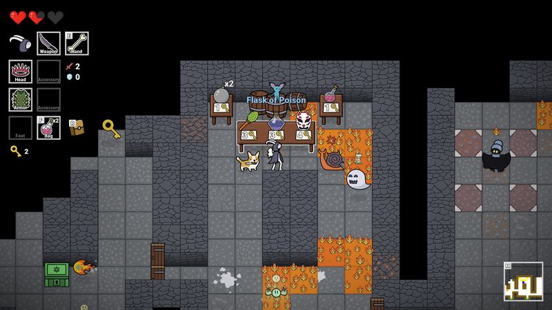 Roguelike theo lượt với lối chơi tối giản, nhịp độ nhanh tập trung vào việc tìm hiểu các kiểu tấn công của kẻ thù và tạo ra sự kết hợp mạnh mẽ với các vật phẩm của bạn.