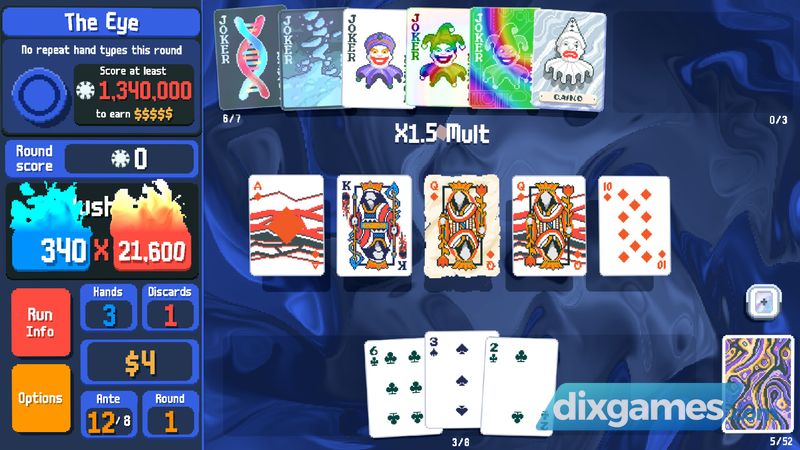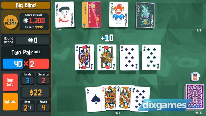 Kết hợp các ván bài poker hợp lệ với các lá bài Joker độc đáo để tạo ra sự phối hợp và cách xây dựng đa dạng. Kiếm đủ chip để đánh bại những người mù quanh co, đồng thời khám phá các phần thưởng và bộ bài ẩn khi bạn tiến bộ. Bạn sẽ cần mọi lợi thế có thể để tiếp cận được tên trùm, đánh bại ván cuối cùng và giành chiến thắng.