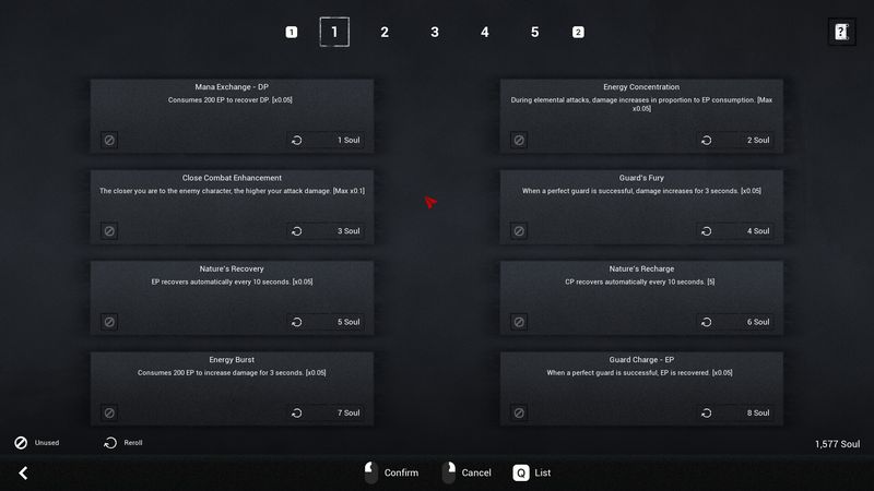 Mỗi vũ khí có 12 đòn tấn công cơ bản và 48 kỹ năng nguyên tố