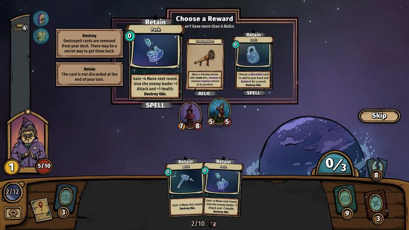 Tập ​​hợp các bộ bài lính, phép thuật và di vật độc đáo. Mỗi vòng, bạn sẽ có thể soạn thảo các lá bài mới để mở rộng kho vũ khí của mình, xây dựng các hiệp lực mạnh mẽ và tăng sức mạnh cho lính của mình. Thu thập các di vật mạnh mẽ để ép xung bộ bài của bạn và nhắm đến các vì sao!