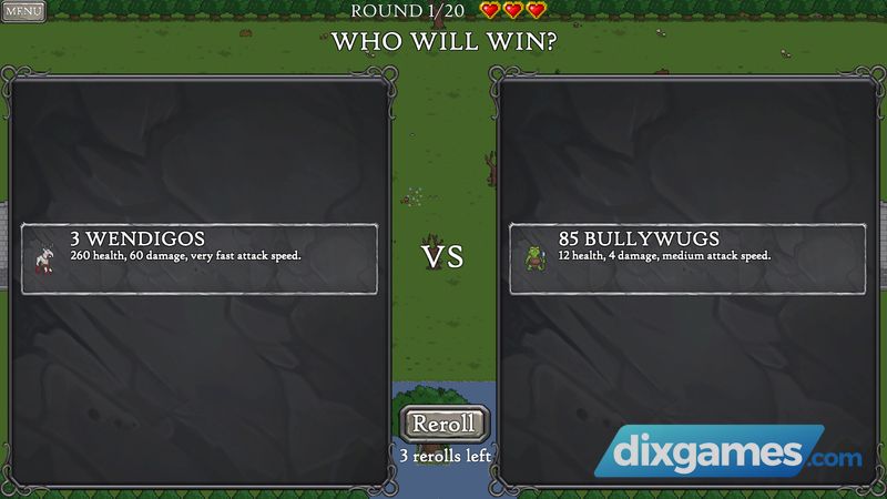 Hãy đoán xem đội quân nào sẽ chiến thắng và xem họ chiến đấu để bạn giải trí. Behold Battle là một game chiến đấu tự động đơn giản, nơi bạn thấy các anh hùng và quái vật chiến đấu đến chết trong các trận chiến được tạo ngẫu nhiên.