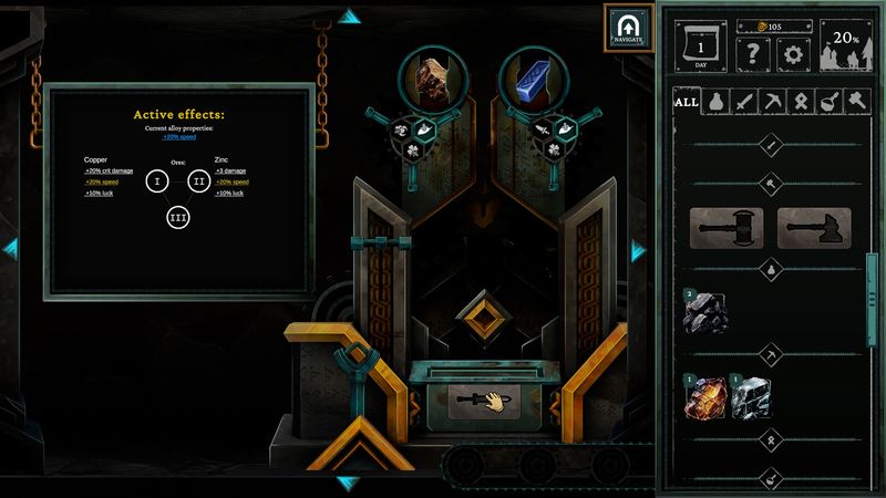 Thu thập các loại quặng kim loại khác nhau trong hầm mỏ. Nấu chảy chúng trong lò nung để có được hợp kim với hiệu ứng đặc biệt. Sau đó, đã đến lúc rèn luyện đúng cách! Hãy cầm búa của bạn và đập vỡ hợp kim trong một minigame đặc biệt để định hình lại và rèn nó thành một vũ khí mạnh mẽ. Khai thác ma thuật rune để cường hóa nó bằng những phụ tố đặc biệt hơn nữa. Tùy thuộc vào độ chính xác trong công việc của bạn, vũ khí sẽ có chất lượng khác nhau. Và chất lượng của chúng càng tốt thì hiệu quả (và nguy hiểm) càng cao.