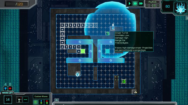 • Byte có AI năng động, nhân vật phản diện Complexus, cố gắng chống lại hành động của bạn bằng các tháp pháo mà cô ấy xác định sẽ là tốt nhất cho công việc. Không có con đường nào có thể an toàn lâu dài.