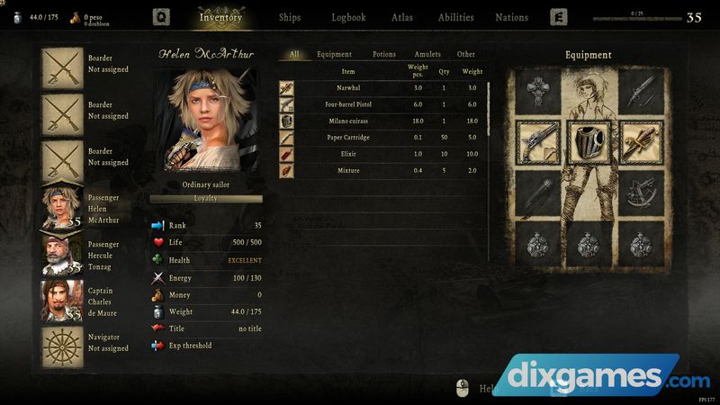 - Trang bị cho bản thân và đồng đội của bạn nhiều loại kiếm, rìu, liễu kiếm, áo giáp, súng hỏa mai và súng lục.
