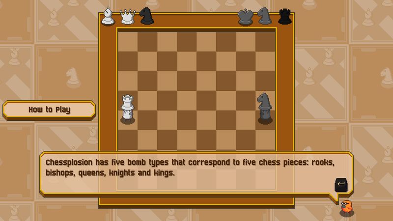 Chessplosion là một trò chơi giải đố hành động arcade, nơi bạn thả bom quân cờ vua để tạo ra phản ứng dây chuyền và bẫy đối thủ. Đánh bại kẻ thù và trùm trong Chế độ phiêu lưu và Chế độ ngục tối lấy cảm hứng từ roguelike, phá vỡ mục tiêu bằng bom giới hạn trong Chế độ giải đố hoặc chiến đấu với bạn bè và AI trong Chế độ chiến đấu.