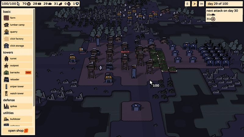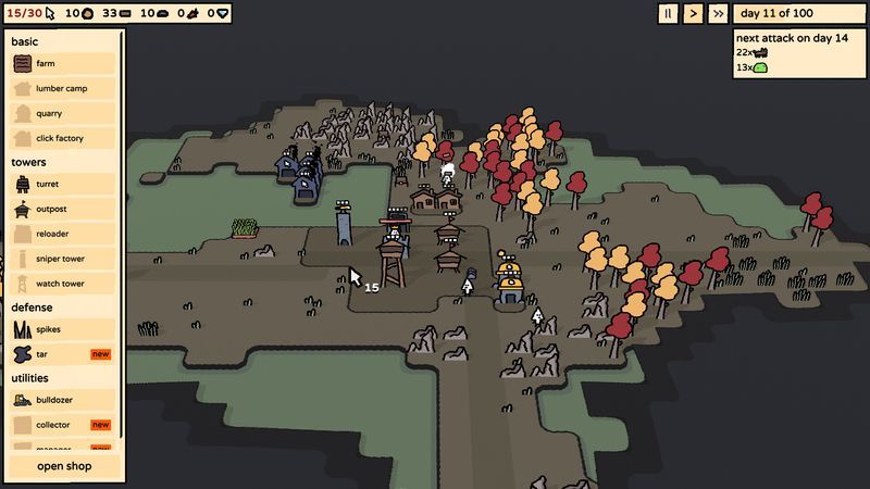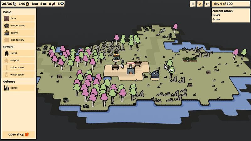 clickyland là người xây dựng làng phòng thủ tháp. Bảo vệ lâu đài của bạn bằng cách sử dụng các cú nhấp chuột để thu hoạch tài nguyên, chiến đấu với kẻ thù và quản lý ngôi làng của bạn. Ví dụ: nhấp vào cây để lấy gỗ, nhấp vào kẻ thù để gây sát thương cho chúng hoặc nhấp vào sương mù để hiển thị thêm bản đồ.