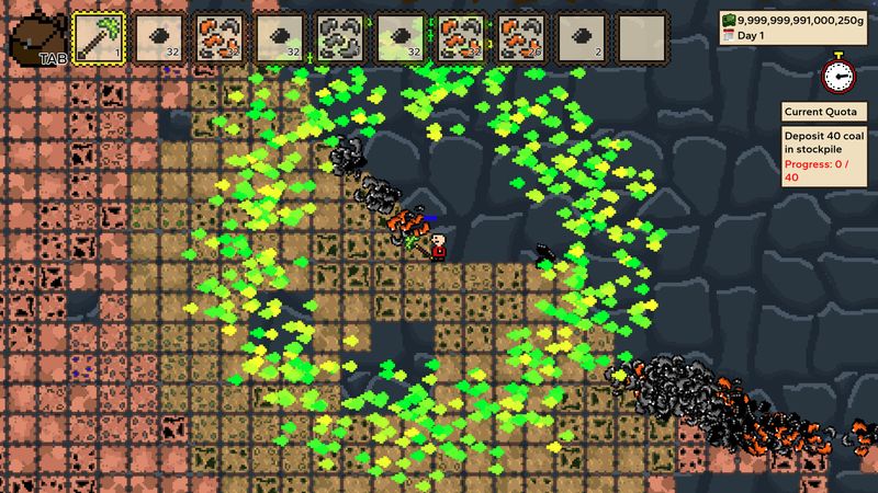 Thế giới ngầm được tái tạo một cách kỳ diệu mỗi ngày, vì vậy bạn phải chạy đua để khai thác càng nhiều và càng sâu càng tốt trước khi màn đêm buông xuống. Sử dụng một số phương pháp rất thú vị và siêu thực tế để làm điều đó. Tuy nhiên, thế giới của bạn có thể xấu đi khi bạn phát triển.