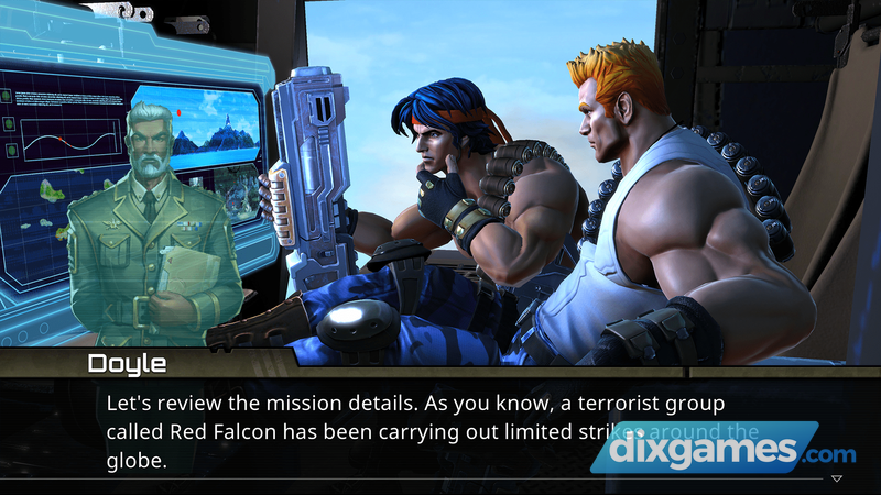 Năm: 26XX sau CN. Quần đảo Galuga ngoài khơi New Zealand là nơi xuất hiện trận mưa sao băng bí ẩn. Sáu tháng sau, nhóm khủng bố Red Falcon xâm chiếm hòn đảo và người ta có thể phát hiện ra sóng trọng lực bất thường phát ra từ khu vực này. Liên bang Trái đất gửi Quân đội GX để trinh sát, nhưng liên lạc đã bị mất. Không còn lựa chọn khả thi nào khác, Thủy quân lục chiến Trái đất cử những người lính ưu tú nhất của mình – Bill Rizer và Lance Bean của đơn vị Contra – để điều tra và vô hiệu hóa mọi mối đe dọa tiềm tàng. Cuộc xung đột sau đó biến hòn đảo yên bình một thời thành một vùng chiến sự toàn diện, nơi số phận của nhân loại đang ở thế cân bằng.