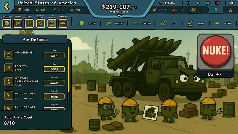 Trong Countryballs: Power Protocol, thời gian thực sự là tiền bạc. Thu nhập của bạn tăng lên theo từng giây. Nâng cấp công nghiệp, mở rộng thương mại và quản lý tài sản toàn cầu để hỗ trợ mở rộng quyền lực. Bạn kiểm soát càng nhiều quốc gia, nền kinh tế của bạn càng phát triển mạnh. Quyết định thông minh sẽ dẫn đến thống trị toàn cầu.
