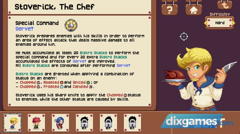 Chọn từ nhiều nâng cấp khác nhau trong Action Roguelite này để tạo các bản dựng độc đáo phục vụ cho từng nhân vật trong mỗi lần chạy. Bạn sẽ trở thành một Đầu bếp tập trung vào việc phục vụ các món sa mạc hay nướng kẻ thù của mình? Một Thợ may sẽ chắp vá kẻ thù của bạn lại với nhau hoặc tàn sát chúng bằng những quả bóng sợi? Bạn sẽ chọn chất liệu nào cho bức tượng của mình: gỗ hay đá cẩm thạch? Tìm cách xảo quyệt của riêng bạn để SỐNG LẠI!