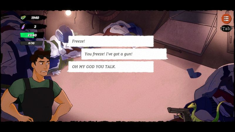 Creepy Redneck Dinosaur Mansion 3 “cam kết hết mình” đến mức đau đớn. Đây là phần tiếp theo của một loạt trò chơi không tồn tại, hoàn chỉnh với truyền thuyết và một nhóm phát triển hư cấu. Đây là trò chơi mà ghép 3 không chỉ được sử dụng để chiến đấu mà còn để mở khóa cửa, tranh luận với rô bốt và nuốt một loạt kim cương trước mặt một tên trộm đá quý khét tiếng để hắn không thể đánh cắp chúng trước. Xét về mọi yếu tố thể loại, đây là một game nhập vai hài kinh dị sinh tồn ghép 3 metroidvania và cực kỳ tuyệt vời.