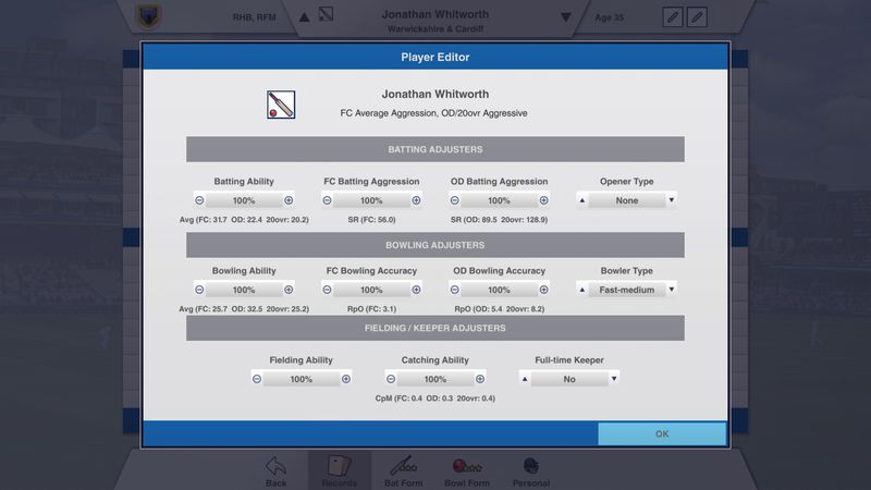 • Player Editor: điều chỉnh khả năng của người chơi để phản ánh hiệu suất thực tế.