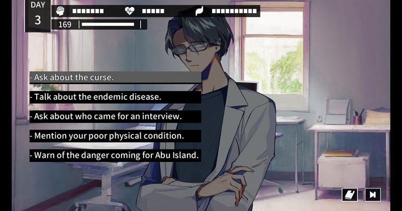 Một cuộc phiêu lưu tung xúc xắc kinh dị lấy cảm hứng từ Thần thoại Cthulhu. Giống như trong một game nhập vai trên máy tính bảng, “khả năng”, “may mắn” và “xúc xắc” ảnh hưởng đến diễn biến của câu chuyện. Nhân vật chính bị nguyền rủa trên một hòn đảo ở Biển nội địa Seto. Điều tra hòn đảo, khám phá những bí ẩn và phá bỏ lời nguyền!