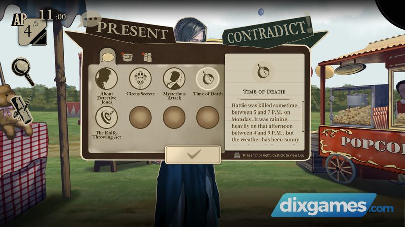 Kiểm soát hai nhân vật chính giải quyết vụ án từ những góc nhìn khác nhau: một người là pháp sư đồng nghiệp và đồng nghiệp của nạn nhân, người còn lại là một thám tử tư đang vật lộn với cơn mất trí nhớ. Sử dụng các kỹ năng và kiến thức chuyên môn độc đáo của họ để kết bạn và thẩm vấn một lượng lớn nhân vật, điều tra nhiều địa điểm khác nhau và tìm ra những mâu thuẫn trong một câu chuyện quanh co đầy những khúc mắc, khúc mắc và phản bội, chắc chắn sẽ gây sốc và thích thú cho cả những thám tử cũng như những người hâm mộ rạp xiếc.