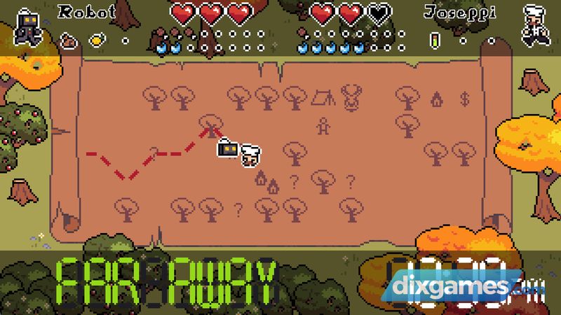 Mọi cuộc phiêu lưu đều bắt đầu bằng một bản đồ được tạo ngẫu nhiên để bạn khám phá. Chọn những địa điểm bạn muốn ghé thăm và tìm hiểu điều gì có thể chờ đợi đằng sau mỗi biểu tượng!