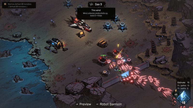 Ngay cả khi bạn tạm thời an toàn, đừng bao giờ bằng lòng với tình trạng hiện tại. Thời tiết của hành tinh này là không thể đoán trước và có thể ảnh hưởng đến các kế hoạch phòng thủ đã thiết lập của bạn bất cứ lúc nào. Đừng thương xót những con quái vật trên hành tinh này.