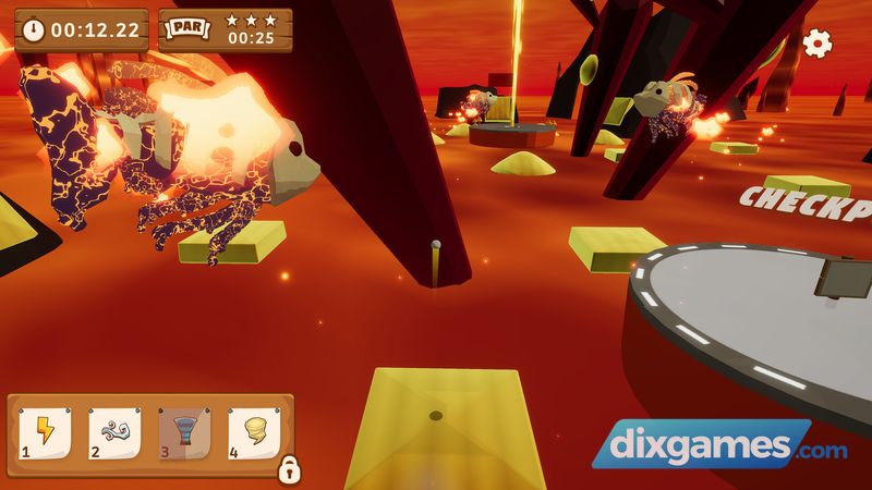 Gửi các thiên thạch để ném quả bóng gôn của bạn lên không trung hoặc gây ra động đất để đẩy quả bóng về phía trước – bất cứ điều gì cần thiết để đạt được điểm par ngọt ngào đó.