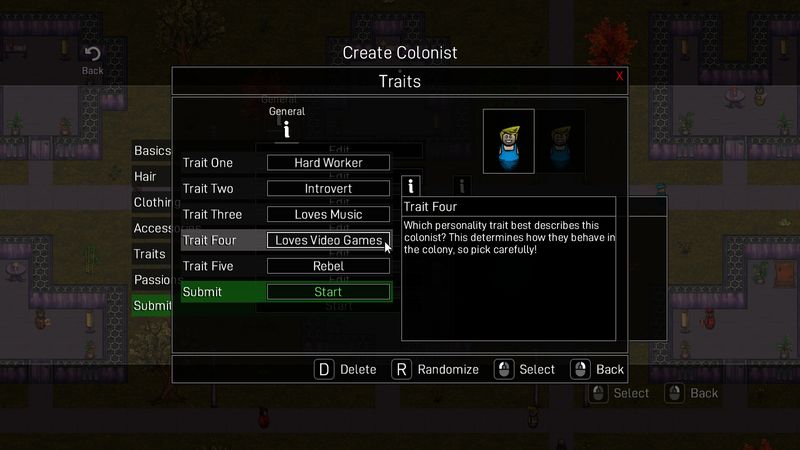 Những người thực dân của bạn sẽ hành động ích kỷ hay vị tha? Họ có đam mê gì trong cuộc sống? Họ có muốn làm việc không? Các đặc điểm tính cách bạn chọn sẽ dẫn đến đủ loại tình huống thú vị.