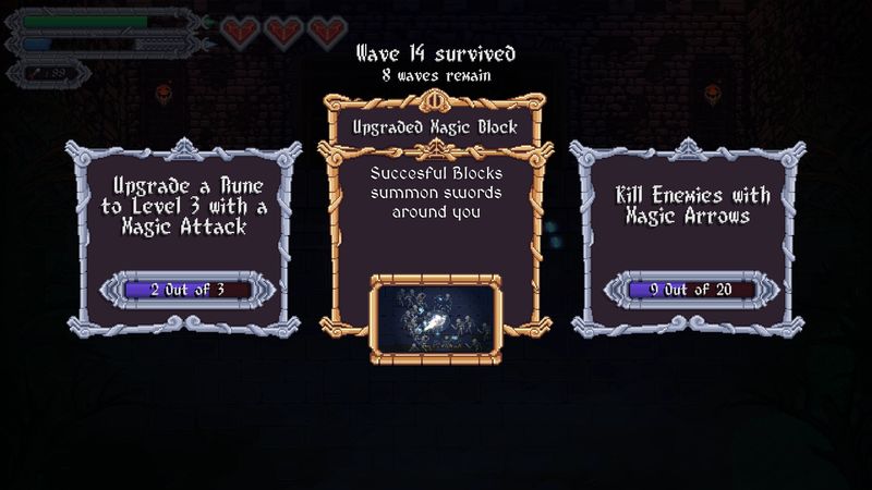 Bạn sẽ mở khóa và nâng cấp các kỹ năng bằng cách hoàn thành các thử thách, những kỹ năng này được giữ lại giữa mỗi lần bạn thực hiện thử thách mới để cứu thành trì của mình.