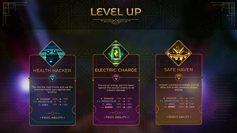 Một cơ giáp sử dụng kiếm.Một chú ếch không gian bắn tỉa chính xác. Điều khiển cả hai nhân vật đồng thời chống lại các thế lực của Entropy trong trò chơi roguelike bullet hell ngược. Bạn sẽ đưa hai anh hùng không ngờ này về nhà chỉ bằng sức mạnh không thể ngăn cản của tình bạn (và một kho vũ khí hoạt hình đầy ấn tượng)!