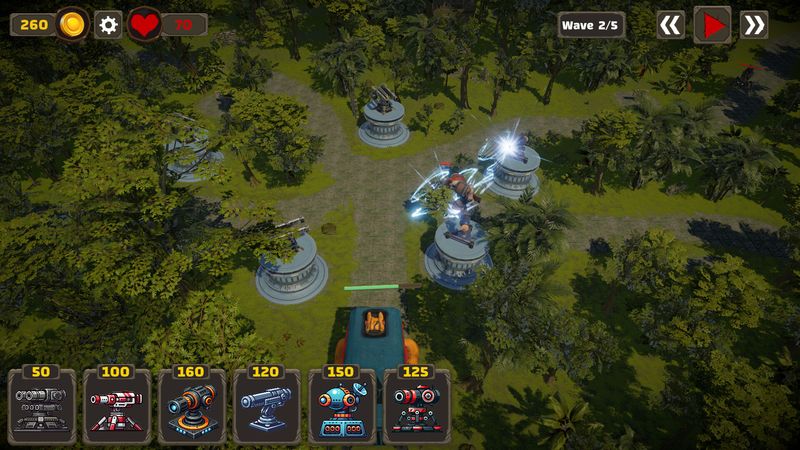 Đặt tháp pháo một cách chiến lược: Chọn từ kho vũ khí đa dạng gồm nhiều loại tháp pháo, mỗi loại được thiết kế để chống lại các chiến thuật cụ thể của kẻ thù. Đặt chúng một cách khôn ngoan để tối đa hóa hiệu quả của chúng.