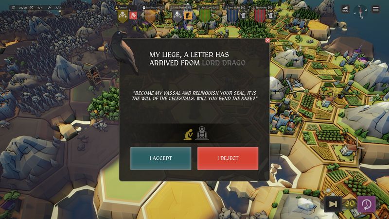 Một trò chơi chiến thuật theo lượt mà bạn có thể chơi một mình hoặc với bạn bè trong khoảng một hoặc hai giờ! Dễ chơi nhưng khó thành thạo. Lên kế hoạch cho chiến lược của bạn, đánh bại kẻ thù hoặc giúp lãnh chúa của bạn giành được vương miện trên một vương quốc đảo được tạo theo thủ tục. Giành ngai vàng… hoặc quỳ gối!