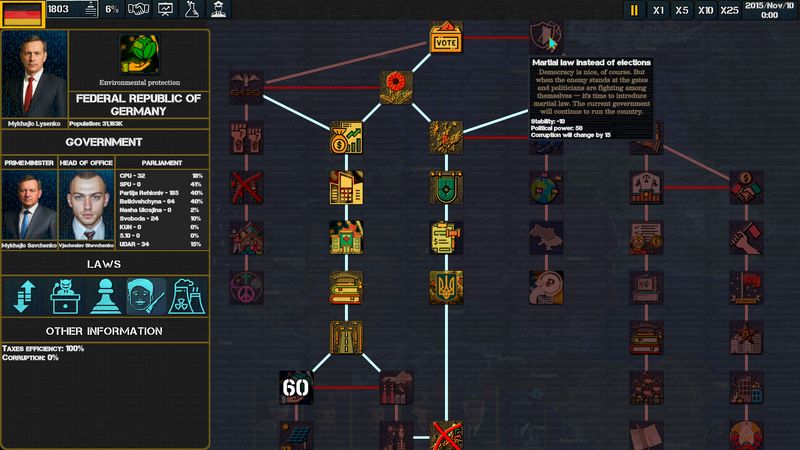 - Quyết định: Đưa ra những quyết định quan trọng cho quốc gia của bạn, chẳng hạn như tuyên truyền của chính phủ hoặc in tiền.