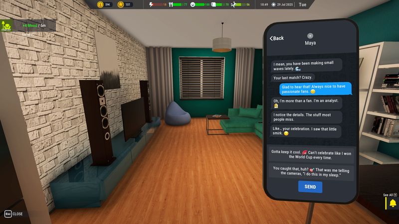 Trải nghiệm cuộc sống của một cầu thủ bóng đá chuyên nghiệp trên sân cỏ và ngoài đời thực. Luyện tập, thi đấu, quản lý cuộc sống xã hội, thăng tiến trong sự nghiệp và tiêu số tiền bạn kiếm được. Hãy tận hưởng sự xa hoa trong khi vẫn kiểm soát tốt các mối quan hệ và tài chính của bạn.