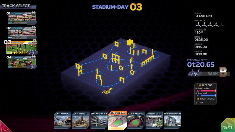 Đường đua chuyên nghiệp với tối đa 20 máy bay không người lái AI đua cùng bạn cùng lúc chắc chắn có thể khiến bạn cảm thấy như đang ở trên đường đua.