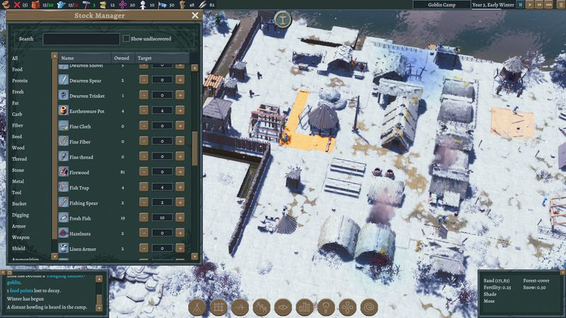 Bạn sẽ khai thác nhiều nguồn tài nguyên khác nhau để xây dựng trại của mình, nhưng công cụ quan trọng nhất mà bạn có thể sử dụng sẽ là quần thể yêu tinh ngày càng tăng của bạn. Mỗi yêu tinh đều có sự kết hợp các kỹ năng, đặc điểm và tính cách kỳ quặc riêng, và khi chúng làm mọi việc và có kinh nghiệm, chúng sẽ học các kỹ năng mới và phát triển các khả năng mới.