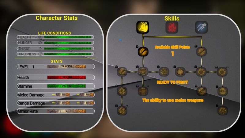 Với điểm kinh nghiệm bạn có được từ việc tiêu diệt zombie, hoàn thành nhiệm vụ hoặc chế tạo đồ vật, bạn có thể kích hoạt các khả năng mới từ cây kỹ năng và trở nên mạnh mẽ hơn rất nhiều với những khả năng mới này.