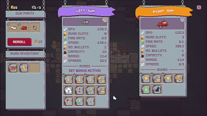 Rèn súng của bạn từ các bộ phận súng ngẫu nhiên. Nhận sát thương, tốc độ bắn và tầm bắn phù hợp cho bản dựng của bạn. Thêm chữ rune vào súng của bạn để thay đổi hoàn toàn hành vi của chúng. Khiến kẻ thù phát nổ thành vàng khi trúng đích. Thêm độ nảy vào đạn. Tạo ra các cột trụ khi kẻ thù chết.