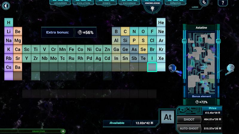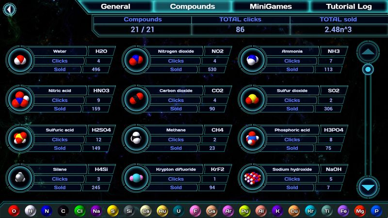 Một trò chơi kết hợp giữa thể loại quản lý thời gian / chiến lược / giáo dục. Đơn giản và gây nghiện, với đơn vị tiền tệ là các nguyên tử và mục tiêu là kiểm soát chúng và đạt đến sự tiến hóa cuối cùng. Chúa đã tạo ra thế giới trong 6 ngày… còn bạn thì sao?
