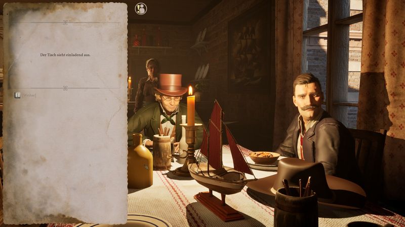 Khám phá thế giới mở: Di chuyển tự do quanh một thị trấn ven biển vào năm 1870 và tìm kiếm manh mối.