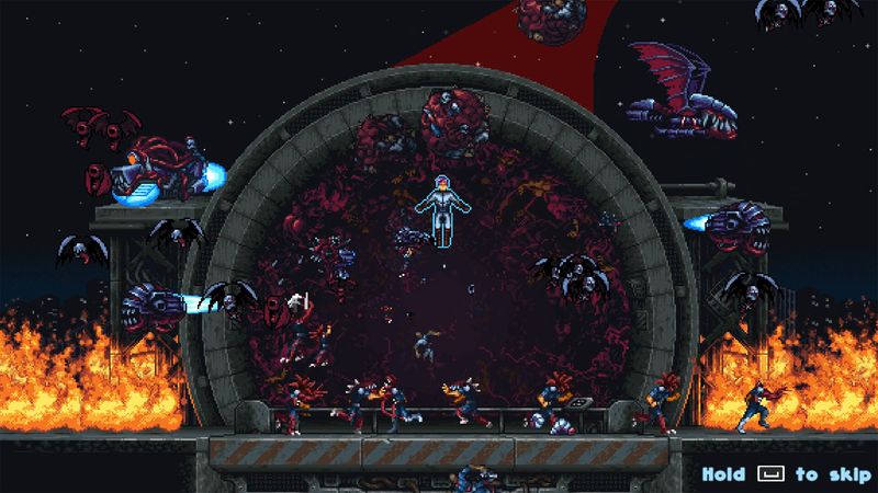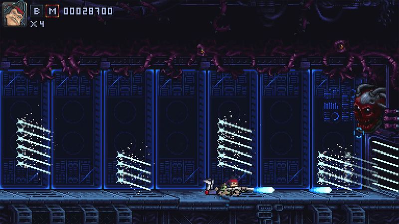 Iron Meat tôn vinh các tựa game chạy và bắn kinh điển trong quá khứ, với các trận đấu trùm dữ dội được chia thành nhiều giai đoạn. Với ba cài đặt độ khó để lựa chọn, người chơi có thể thử thách kỹ năng của mình, trong đó độ khó cao hơn sẽ được thưởng bằng trận đấu trùm thậm chí còn khó khăn hơn.