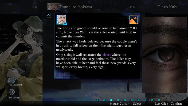 Cùng với một tiểu thuyết gia trinh thám đến từ Okayama, mục tiêu của bạn là ghép lại các lời khai thu thập được từ dân làng và những người liên quan đến vụ việc và khám phá ra sự thật.