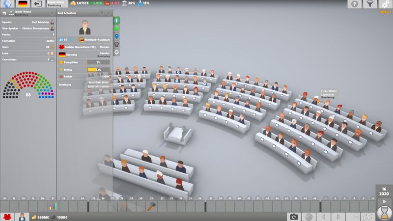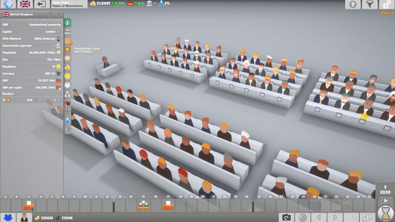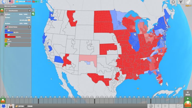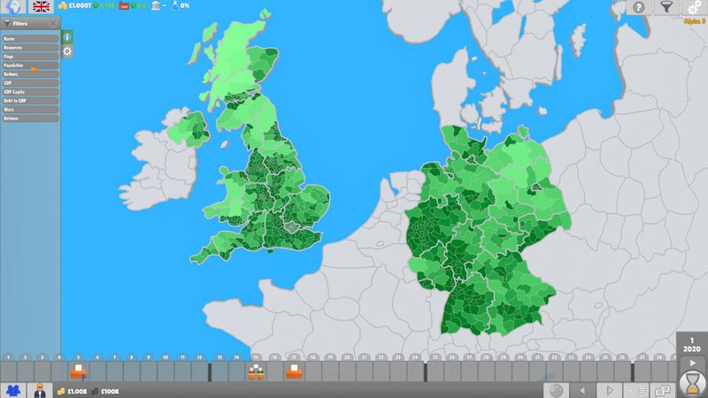 Một bản đồ thế giới thực tế được làm thủ công có các quốc gia, phân khu và thành phố nổi tiếng nhất. Các quốc gia có thể chơi được cũng sẽ có các khu vực bầu cử. Sử dụng các bộ lọc thoải mái để hiển thị mật độ dân số, quan hệ đối ngoại, tăng trưởng GDP, chi tiêu quân sự, tiếp cận truyền thông, kết quả bầu cử, v.v. Để có cái nhìn tổng quan hơn, bản đồ cũng có thể được chiếu lên 2D.