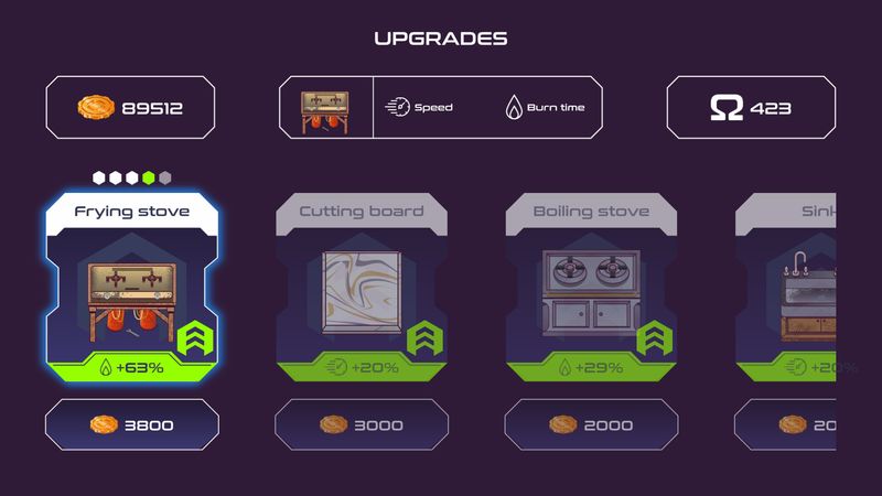 • Thiết bị nhà bếp có thể nâng cấp với các tính năng thay đổi lối chơi có thể mở khóa