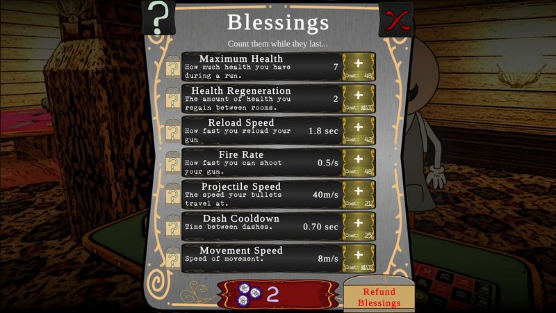 Nâng cấp bản thân bằng tiền tệ tìm thấy trong các lần chạy, Casino Chips có thể được sử dụng để mặc cả với các thế lực đen tối của sòng bạc, giúp bạn mạnh mẽ hơn vĩnh viễn. Trang bị nhiều đôi găng tay khác nhau, cho phép bạn chơi theo các khả năng khác nhau. Mọi khía cạnh của khả năng của bạn đều có thể được nâng cấp, vì vậy hãy chắc chắn thu thập càng nhiều chip càng tốt!