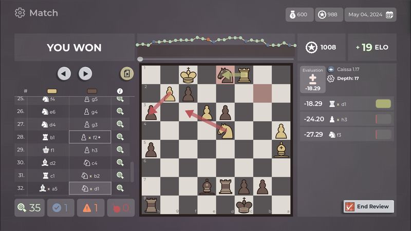 Phát triển kỹ năng chơi cờ ngoài đời thực của bạn nhờ có một huấn luyện viên luôn có mặt theo dõi sự nghiệp của bạn, thách thức các đối thủ AI, những câu đố khó giải và một tiết mục mở màn luôn phát triển…nhưng hãy cẩn thận với những sai lầm ngớ ngẩn!