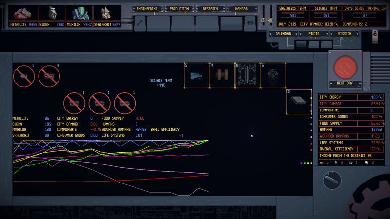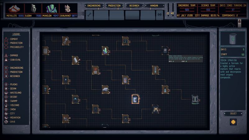 Các kỹ năng và trạng thái cảm xúc của mỗi phi công cũng đóng một vai trò quan trọng, cùng với việc quản lý hiệu quả căn cứ và tài nguyên của bạn. Bạn sẽ triển khai những cỗ máy đã được hiệu chỉnh và điều chỉnh tinh vi của mình vào các nhiệm vụ, trong đó các quyết định của bạn trong các trận chiến bán tự động (có tính năng tạm dừng hoạt động) chống lại vũ khí sinh học đột biến của người ngoài hành tinh sẽ có nghĩa là sống hay chết.