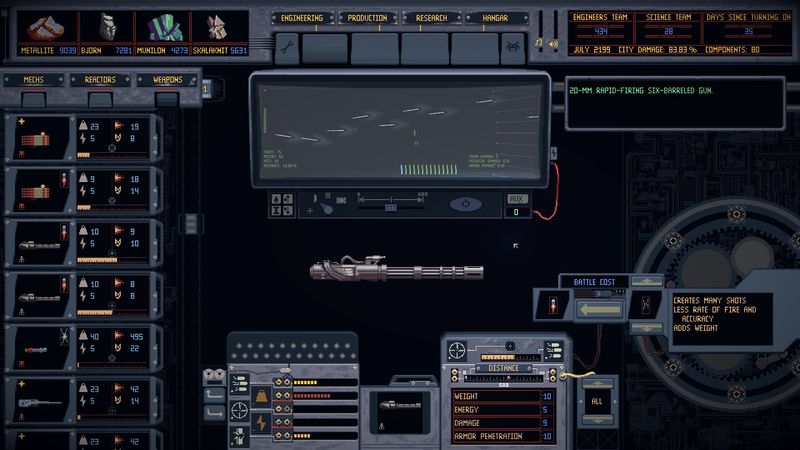 Mech Engineer là giấc mơ trở thành hiện thực của những người yêu thích cơ khí: bạn sẽ giám sát mọi khía cạnh hoạt động của đội mình, từ tối ưu hóa lò phản ứng đến tinh chỉnh hệ thống vũ khí. Tinh chỉnh và cân bằng cẩn thận trọng lượng, năng lượng và hệ thống nhiệt của từng cỗ máy để tối đa hóa hiệu quả.