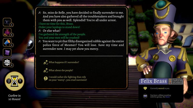 Mesmer là một trò chơi sinh tồn xã hội độc đáo, nơi mọi cuộc chạm trán đều quan trọng. Là một nhà lãnh đạo cách mạng, hãy tác động đến mọi người và phe phái để họ theo đuổi mục tiêu của mình, đồng thời tránh xa sự chú ý của cảnh sát mật. Rủi ro rất cao và nguy hiểm thì rất nhiều. Nhưng vẫn còn hy vọng.